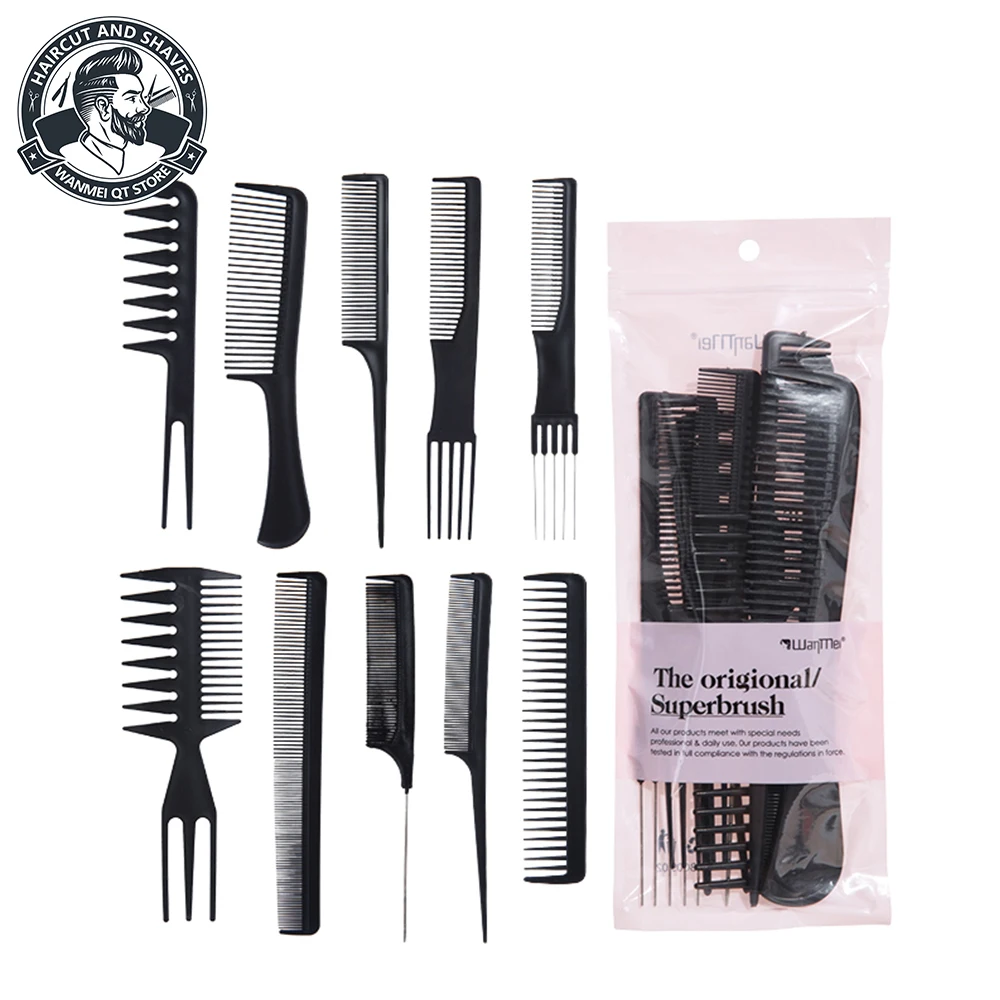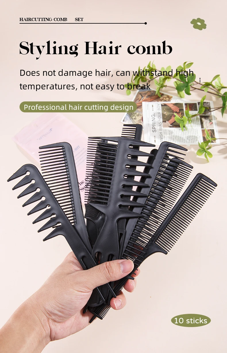 10 Pcs Black Hairstylist Professional Styling Comb Set-various Sets Suitable for All Hair Types and Styles-perfect for Salon UseAvailability: 17 in stock
